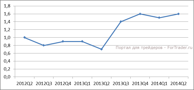 Покупать при пробое уровня 0,8720 с целью 0,8820. Stop-Loss = 0,8660. Годовые темпы роста индекса потребительских цен NZDUSDво 2 кв. 2014 года ускорились с 1,5% до 1,6%. Рост инфляционного давления будет способствовать сохранению национальным регулятором высокой процентной ставки в 3,25% годовых.
