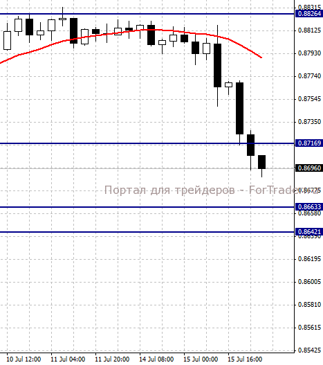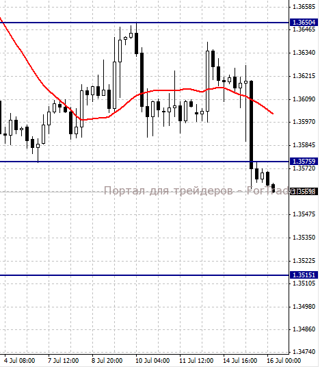 Покупать сейчас с целью 1,0813. Стоп-лосс = 1,0720.Текущая цена = 1,0763. Сегодня в 14.00 GMT ожидается, что Банк Канады сохранит ключевую процентную ставку в стране на уровне 1,00% на фоне слабой канадской статистики по рынку труда в июне месяце. Кроме того, давление на курс «луни», через снижение чистого экспорта, оказывает падение цен на нефть WTI более чем на 8 долларов за последний месяц.