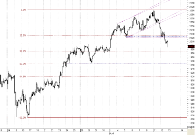 После безоткатного роста от минимумов марта до конца прошлой недели на 15% фьючерс на индекс РТС вчера продолжил снижение, начавшееся в понедельник, показав снижение на 2,3% по итогам торгового дня. Новостными факторами, послужившими для вчерашнего снижения, стали: известия о повышении до седьмого уровня опасности – крупная авария (самый высокий уровень опасности), японским агентством ядерной безопасности аварию на АЭС «Фукусима-1»; отчет компании Алкоа Инк. оказался хуже прогнозов; негативная статистика по торговому балансу США – экспорт сократился на 1,4% в феврале, что оказалось больше чем прогнозировалось. На этом фоне снижалось подавляющее большинство акций и деривативов на российских фондовых площадках.