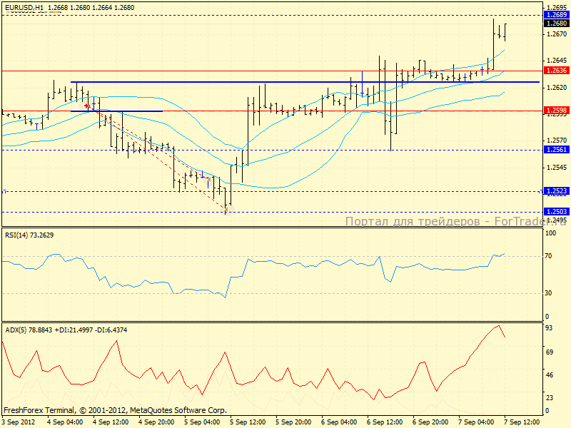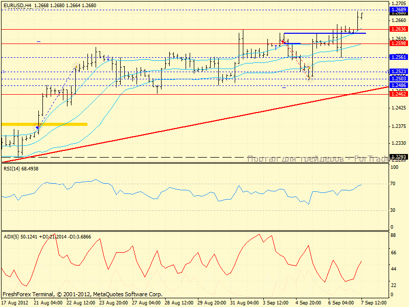 Н4: перекупленность слишком велика, чтобы ждать еще 200 пунктов роста без значительной коррекции. Продавцам сегодня искать счастье у 2689, 1.2700 и 1.2725.