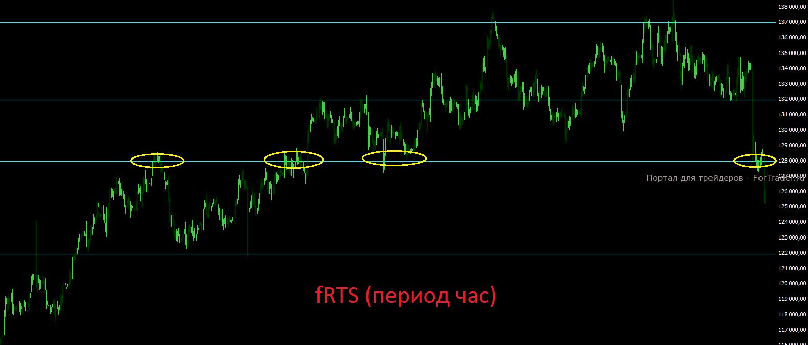 И в заключение локальная ситуация по фьючерсу на индекс РТС. Ещё на прошлой неделе я писал, что как только будет пробита отметка 128000 пунктов, так сразу можно будет смело утверждать об окончательном развороте и готовиться к более сильной коррекции. В четверг, в рамках вечерней сессии, данный рубеж был пробит, и если в пятницу цене не удастся закрепиться над ним, то нужно будет готовиться к дальнейшей коррекции в ближайшие недели. Ближайшая поддержка сейчас находится на отметке 122000 пунктов.