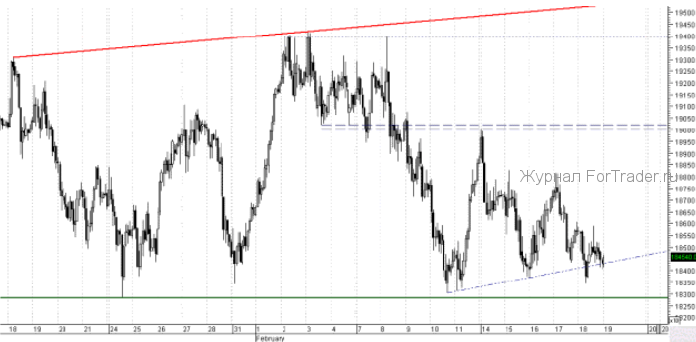 Открытие на российских фондовых площадках сегодня ожидается слабопозитивным, однако тенденция предыдущих недель сохранится, и продолжающийся выход из российских активов будет сдерживать любые попытки роста выше ближайших сопротивлений. Ближайшее сопротивление располагается в районе 190 000. Ближайшая линия спроса, которую протестировали уже 5 раз в течение месяца, пролегает на 183 000. Самый важный вопрос на ближайшее будущее – когда закончится выход из российских активов на текущих уровнях. Если они завершатся и рынок удержится над уровнями поддержки, то логично ожидать резкий и значительный отскок в район годовых максимумов. если же под давлением продаж падёт основная поддержка, то ближайшая цель снижения составит 172 000.