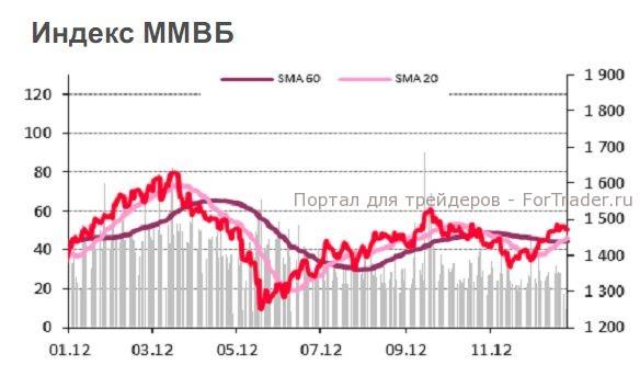Сегодня российский фондовый рынок слабо меняется на открытии. На момент написания обзора индекс ММВБ упал на 0.11% до 1471.9. Весь декабрь российский рынок уверенно восстанавливается, пройдя вверх уже не только важный психологический уровень 1400, но и весь коридор средних. Теперь индекс ММВБ торгуется выше ключевого уровня на 1431/48 (100-, 200-дневная средняя) и близко к ситуации перекупленности (RSI-14 = 61). Ближайшая поддержка на 1474 (10-дневная средняя), 1431/48 ((100-, 200-, 50-, 20-дневная средняя), затем 1400 и 1350/1360 (минимум июля/ноября).