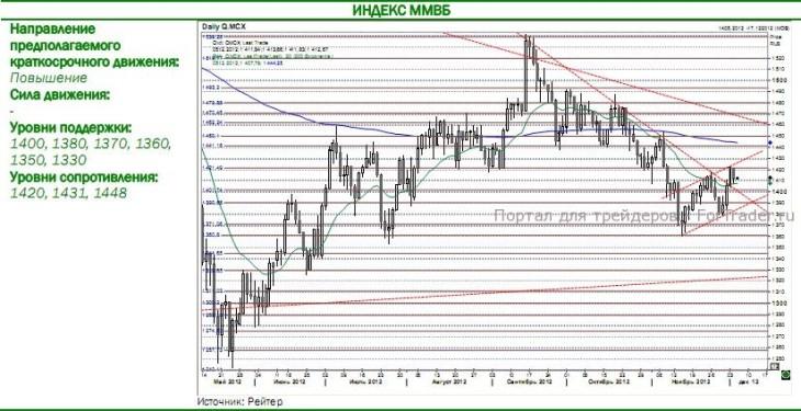В числе среднесрочных поддерживающих рынки факторов также новости из КНР о готовности стимулировать урбанизацию и индустриализацию на отдаленных от побережья территориях, а также надежды на активное расширение эмиссии Банком Японии после смены кабинета министров в Японии в середине декабря. В этой связи в конце года объем ликвидности на рынках может несколько увеличиться и при относительно спокойном (или улучшившемся) внешнем фоне курс на поступательный подъем в предрождественскую неделю может окончательно оформиться. Вместе с тем, риски неожиданных событий в ближайшие недели сильны: в первую очередь мы отмечаем переговоры по «фискальному обрыву» и планке госдолга, продление полномочий ФРС по аренде «печатного станка» (23 декабря), риски понижения рейтинга Германии и дата возможного техдефолта Аргентины (15 декабря). В этой связи коренного изменения отношения инвесторов к рисковым активам в в ближайшие дни мы можем так и не увидеть, а риски краткосрочных резких коррекционных движений высоки. На неуверенность инвесторов указывают, на наш взгляд, и колебания котировок нефти и золота последних дней.