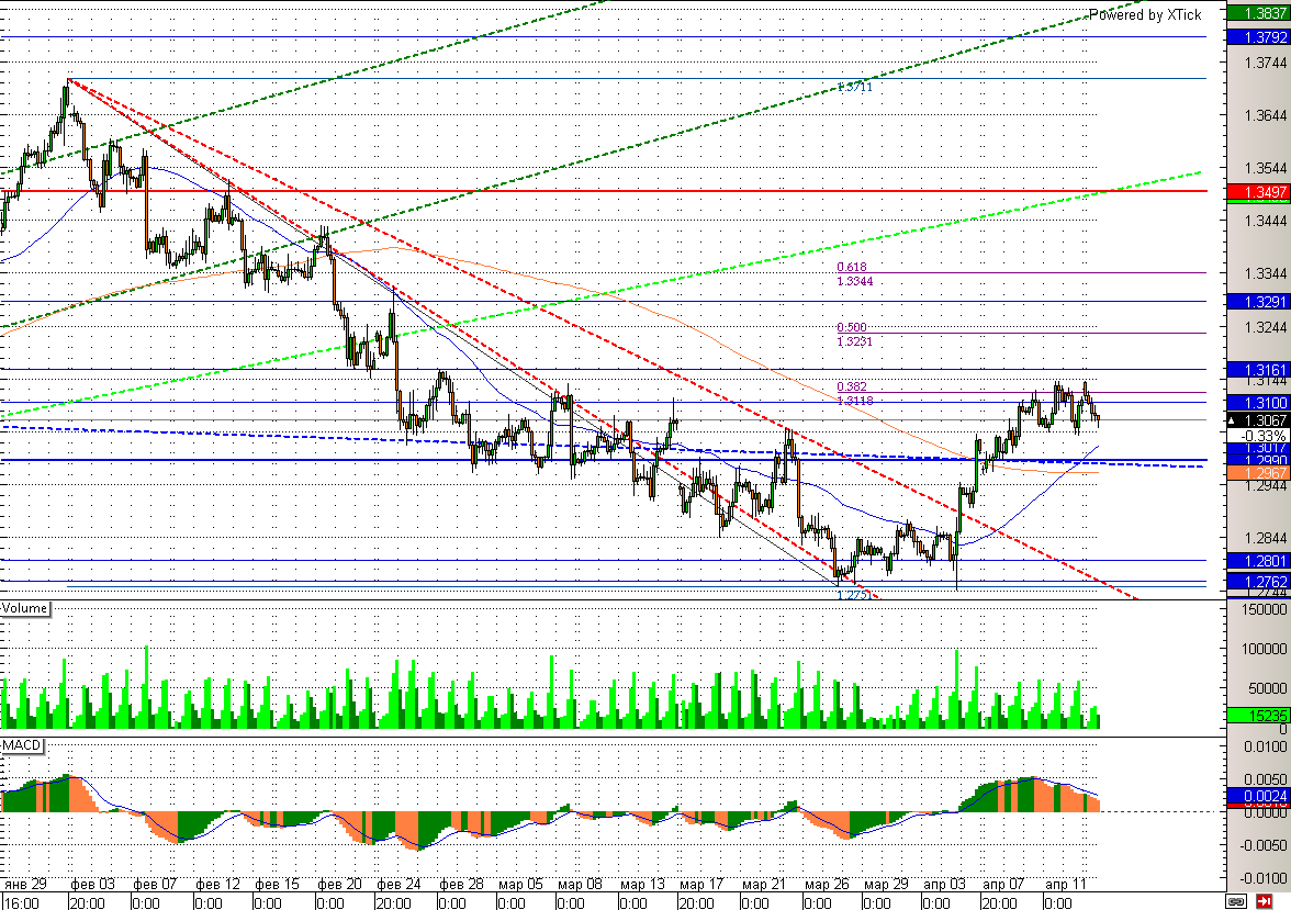 Между тем отметка 1,31 снова оказалась не по зубам европейской валюте и она благополучно от нее отскочила. Теперь пара образовалась «тройную вершину», реализация которой может привести пару в район 1,299.