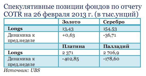 По отчету COTR длинные позиции в золоте немного подросли, а в остальных металлах продолжали снижаться. Особенно сильное падение после продолжительного роста показали позиции в платине.