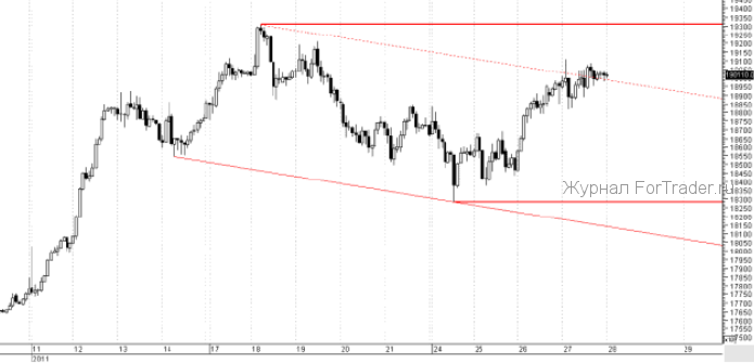 Сегодня на отечественном срочном рынке ожидается смешанное открытие торгов и боковая динамика в течение дня до выхода статданных в США в 16:30. Краткосрочная и среднесрочная тенденции на графике фьючерса на индекс РТС боковые, и определить направление нового возможного тренда будет реальным лишь после преодоления текущих границ консолидации. Верхняя граница расположена в районе годовых максимумов на отметке 193 100. Её пробой открывает дорогу к достижению 200 000. Граница же определяющая снижение проходит на уровне 182 850, и подавляющее большинство стопов, оставшихся в длинных позициях трейдеров, располагается чуть ниже обозначенной линии спроса.