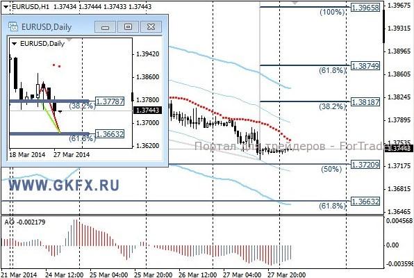 Пара EURUSD в соответствии с ожиданиями снижалась, открыв сделку по рекомендации по 1,3750. Цели еще достигнуты не были, но ожидаю продолжения снижения. Снижению пары способствовала статистика по США и ожидания принятия, дополнительных мер стимулирования ЕЦБ. На эту неделю традиционно рассматриваю два варианта возможного движения цены, основной красный и альтернативный зеленый. Значимые уровни на сегодня отмечены на часовом графике. Индикатор АО находится в отрицательной зоне и растет, на коррекцию перед возможным продолжением снижения. Индикатор тренда указывает на снижение. Держать продажи от 1,3750 с целями 1,3720, 1,3700 и 1,3670.