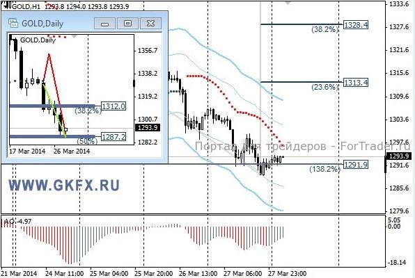 Цены на золото, к сожалению, не поднимались к предполагаемому уровню открытия сделки на продажу. Однако снижение продолжилось и достигало второй цели. Направление выбрано верно, но войти повторно не удалось. Сегодня пятница и потенциал к снижению очень слабый, рекомендаций не даю, но по-прежнему продолжаю ожидать снижение. Традиционно делаю два варианта движения цены на неделю, основной красный и альтернативный зеленый. Значимые уровни на сегодня отмечены на часовом графике. Индикатор АО находится в отрицательной зоне и растет, указывая на коррекцию перед возможным продолжением снижения. Индикатор тренда указывает на снижение. Вне рынка.