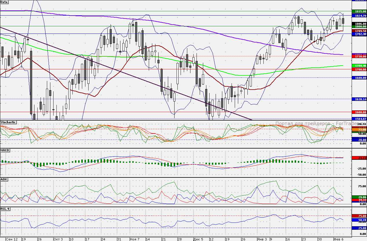Ближайшие уровни поддержки: 1800,00/1790,00/1780,00/1750,00