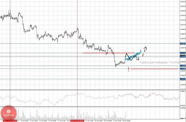 По паре Доллар/Франк ключевым уровня являются: 0.8872, 0.8751, 0.8705, 0.8587, 0.8546 и 0.8414. Здесь основные цели остались практически без изменения и мы ожидаем оформления выраженных начальных условий для восходящего цикла. Краткосрочное нисходящее движение, ожидаем в диапазоне 0.8587 – 0.8546, пробой последнего значения должен сопровождаться выраженным нисходящим движением, в данном случае потенциальная цель 0.8414, по достижении этого уровня ожидаем откат к верху. Краткосрочное восходящее движение, ожидаем в диапазоне 0.8705 – 0.8751, отсюда есть вероятность разворота к низу, с последующей отменой восходящей структуры. Пробой уровня 0.8751 будет располагать к развитию верха от 20 октября, в данном случае потенциальная цель 0.8872.