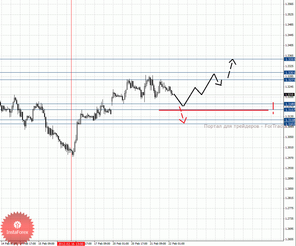 По паре Евро/Доллар важными уровнями являются: 1.3353, 1.3301, 1.3273, 1.3180, 1.3157, 1.3118 и 1.3102. Здесь ключевые цели пока остались без изменения. Краткосрочное восходящее движение, а также консолидацию, ожидаем в коридоре 1.3273 – 1.3301, пробой последнего значения должен сопровождаться выраженным восходящим движением к потенциальной цели – 1.3353, по достижении этого уровня ожидаем откат книзу. Корректировочное нисходящее движение возможно в коридоре 1.3180 – 1.3157, пробой последнего значения окажет негативное влияние на развитие восходящей структуры от 16 февраля, а данном случае потенциальная цель 1.3118. Диапазон 1.3118 – 1.3102 является ключевой поддержкой для верха и интересен с точки зрения среднесрочной перспективы.