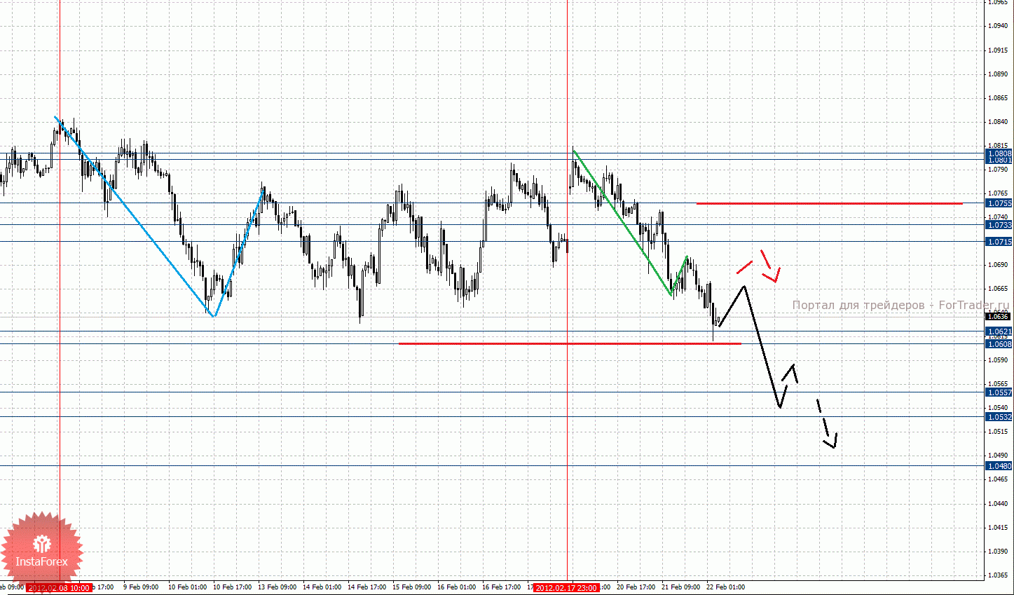 По паре Австралийский доллар/Доллар ключевыми уровнями являются: 1.0808, 1.0801, 1.0755, 1.0733, 1.0715, 1.0621, 1.0608, 1.0557, 1.0532 и 1.0480. Здесь мы следим за развитием локальной нисходящей структуры от 17 февраля. Продолжения движения книзу ожидаем после прохода ценой шумового диапазона 1.0621 – 1.0608, в данном случае цель 1.0557, в коридоре 1.0557 – 1.0532 консолидация цены. Потенциальным значением для низа считаем уровень 1.0480, движение к которому ожидаем после пробоя 1.0532. Краткосрочное восходящее движение возможно в коридоре 1.0715 – 1.0733, пробой последнего значения окажет негативное влияние на развитие нисходящей тенденции в масштабе Н1, в данном случае цель 1.0755. Уровень 1.0755 является ключевым сопротивлением для верха, его пробой позволит рассчитывать на развитие восходящей структуры, в данном случае потенциальная цель 1.0801. Диапазон 1.0801 – 1.0808 шумовой.