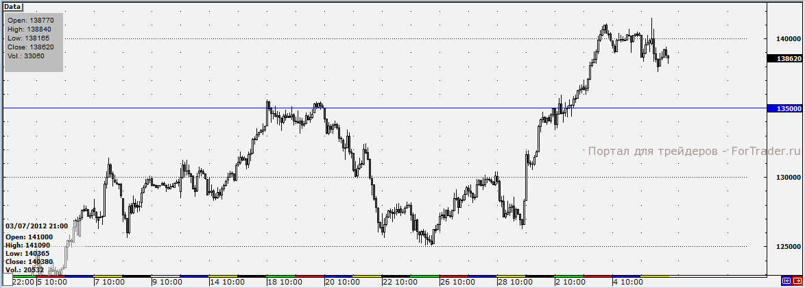 Если о формировании мощного «медвежьего» тренда говорить пока не приходится, то более менее серьезная коррекция не исключена. Ожидаем локального снижения котировок до важной отметки в 135 000 пунктов.