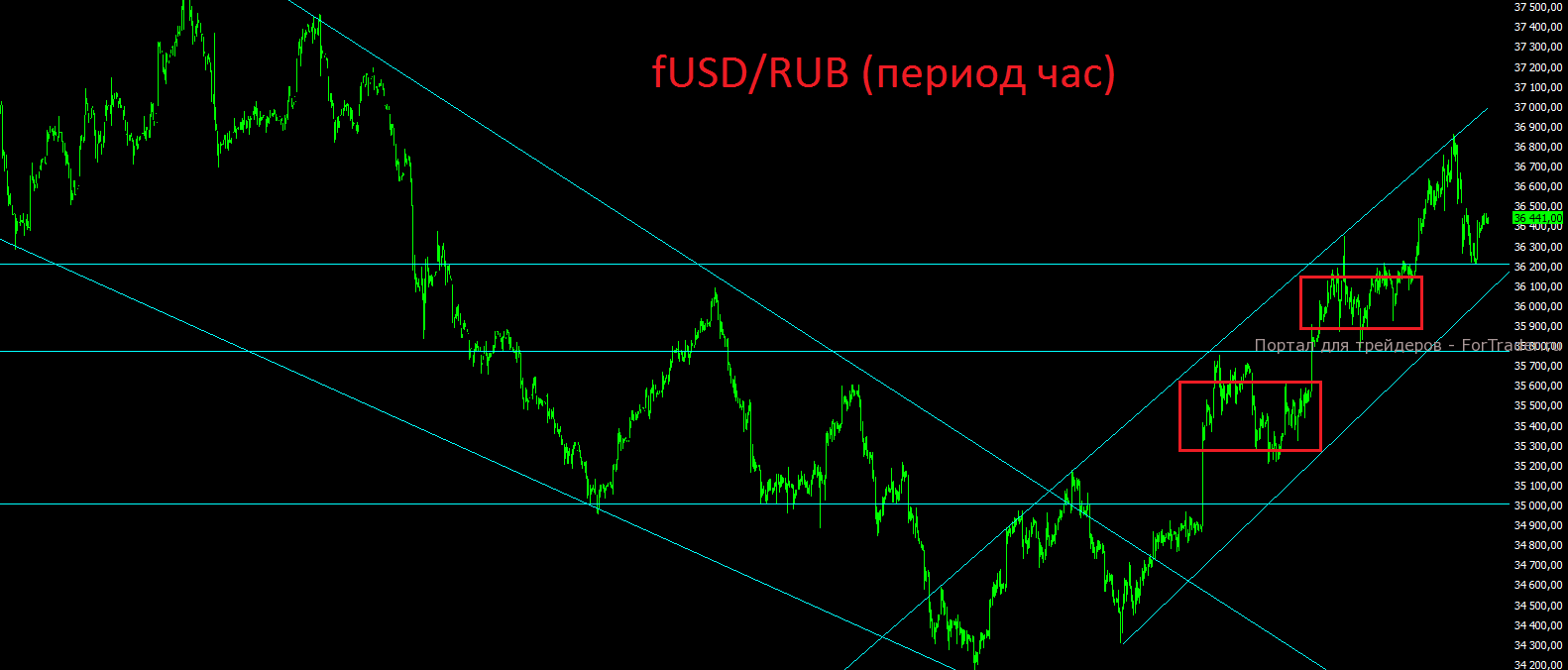 Если взглянуть на локальную техническую картину фьючерса на валютную пару доллар-рубль, то цена продолжает уверенно находиться в восходящем тренде. Ближайший уровень поддержки находится на отметке36200, а ближайшее сопротивление пока на отметке 37000. Делать ставку на укрепление рубля стоит только в случае, если цене удастся опуститься ниже отметки 36000 пунктов.