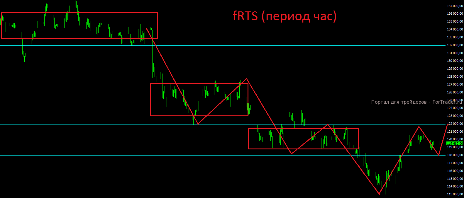 По фьючерсу на индекс РТС техническая картина пока также в пользу быков. После сформировавшегося разворота на прошлой неделе, сейчас цена находится в диапазоне консолидации с границами 118000-122000 пунктов. До тех пор, пока цена по итогам дня не опустится ниже отметки 118000 пунктов можно продолжать удерживать длинные позиции или пробовать их открывать. В случае выхода выше отметки 122000 мы можем увидеть ускорение роста. Открывать короткие позиции можно только при отбое от верхней границы на отметке 122000 или после закрытия дня ниже отметки 118000 пунктов.
