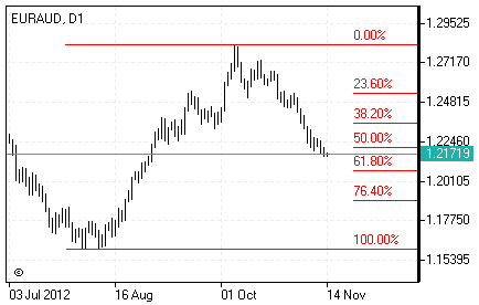 Тем не менее, падение пары EURUSD замедлилось в течение последних торговых сессии, по мере ее приближения к ключевому уровню поддержки в районе 1.2600 (уровень Фибоначчи 50% и 100-дневная скользящая средняя). Привлекательными в октябре-ноябре с точки зрения непрерывности тренда оказались такие кроссы как, например EURAUD – пара всего за месяц потеряла около 5%, упав вчера до самого низкого значения за последние 10 недель – 1.2157.