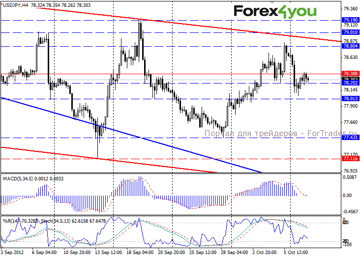 USD/JPY. Поддержка на уровне 78.00/10 спровоцировала остановку падения, и последовавший отскок привел торги к уровню 78.40/30. В настоящий момент «медведи» пытаются возобновить свой тренд, торговля опустилась уже к отметкам 78.20/25. Показания индикаторов усиливают показания в пользу нисходящего движения, к «медвежьим» показаниям других осцилляторов присоединился и SS, что добавляет уверенности в потенциале продаж. На этом фоне возрастает вероятность преодоления препятствие на уровне 78.00/10. Если это случится, то пара последует к следующей ранее отмечавшейся цели — уровню 77.40 и, возможно, к 77.10/15.