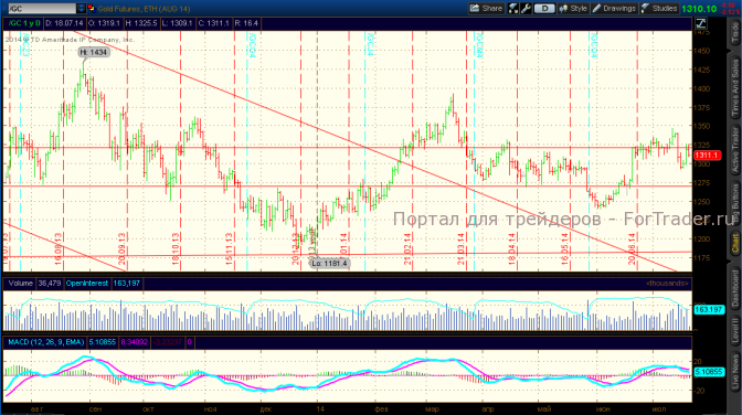 В результате обострения обстановки в мире цены на золото вырастали до уровня сопротивления 1325$, после чего, однако, вновь опустились к уровню поддержки 1310$.
