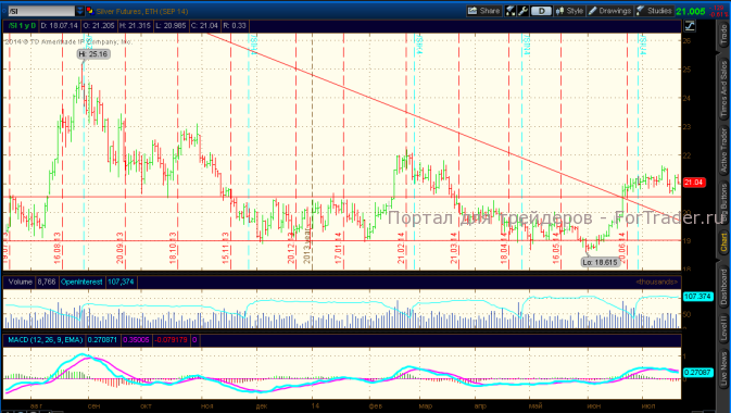 Рынок серебра под влиянием роста цен на золото вырастал до уровня 21,4$, но после вновь опустился до уровня 21,0$. Инвестиционный спрос оживился с падением цен, что поддерживает рынок серебра.