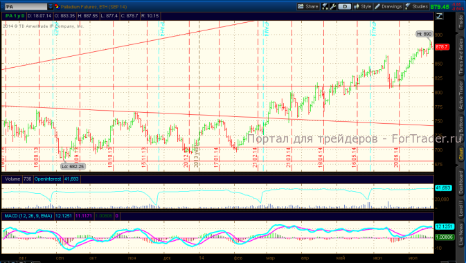 Рынок палладия установил новый максимум на уровне 890$ под влиянием введения секторальных санкций к России, однако в настоящее время инвесторы предпочитают фиксировать прибыль и цены уже протестировали уровень поддержки 870$.