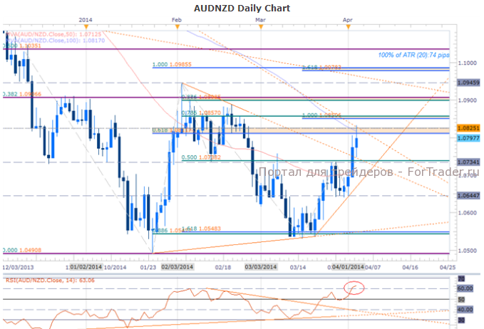 За последнюю неделю пара AUD/NZD пережила значительный подъем. Тем не менее, колебания в районе отметки 1,0712 вполне могут закончиться разворотом и снижением, если не будет преодолен ключевой диапазон сопротивления 1.0812/25.