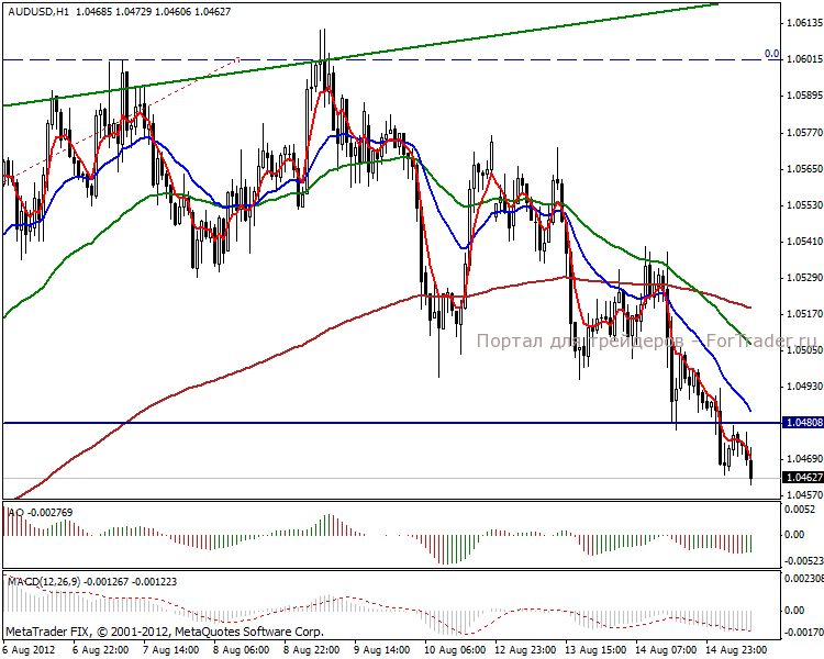 На часовом графике видим завершение коррекции, цена закрепилась в диапазоне 1.04808-1.4410 пунктов. Есть маловероятный сценарий прощупать 1.03946 пунктов, но рекомендуем открывать сегодня лонговую позицию в краткосрочной перспективе с тейкпрофитом 1.05933 пунктов.