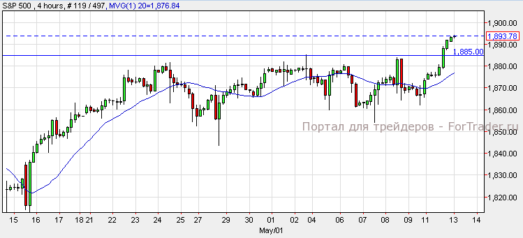 Уолл-стрит завершила торговую сессию понедельника повышением на фоне ралли в технологическом и биотехнологическом секторе. NASDAQ вырос на 1.53%, Dow Jones вырос на 0.68%, а S&P добавил к стоимости 0.85%. Согласно техническому анализу 4-часового графика, S&P торгуется с восходящим импульсом, который поддерживается 20-дневной скользящей средней. Индекс пробил уровень сопротивления 1,885. Если индекс удержит текущую динамику, возможен рост к отметке 1,900. Однако, прорыв ниже уровня сопротивления вернет индекс к отметке 1,870.
