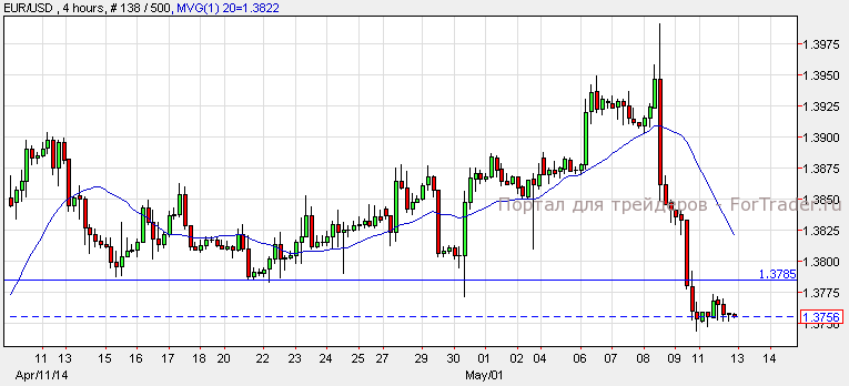 Евро не изменился против доллара США и закрылся на отметке 1.3758. Согласно техническому анализу 4-часового графика, пара торгуется с нисходящим импульсом и поддерживается 20-дневной Скользящей средней. Пока пара торгуется ниже уровня сопротивления 1.3785, ожидается падение к отметке 1.3700. Тем не менее, прорыв уровня сопротивления может привести пару к уровню 1.3900.