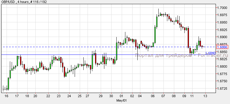 Фунт вырос против доллара и установился на уровне 1.6868. Согласно техническому анализу 4-часового графика, пара фунт/доллар торгуется выше уровня поддержки 1.6840. Удерживая эту динамику пара может вырасти к отметке 1.700, однако падение ниже уровня поддержки приведет к уровню 1.650.