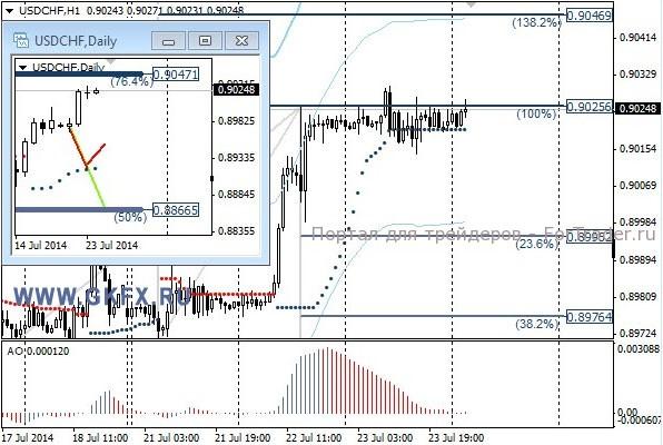 Пара USDCHF похоже готовится к штурму уровня 0,9025, поэтому даю сегодня рекомендацию на покупку. Сегодня возможен рост волатильности, так как ожидаются важная статистика по разным крупным экономикам. На эту неделю традиционно рассматриваю два варианта возможного движения цены, основной красный и альтернативный зеленый. Значимые уровни на сегодня отмечены на часовом графике. Индикатор АО находится у нуля, указывая на неопределенность. Индикатор тренда указывает на рост. Преодоление уровня 0,9030 позволит купить с целями 0,9047, 0,9060 и 0,9075.