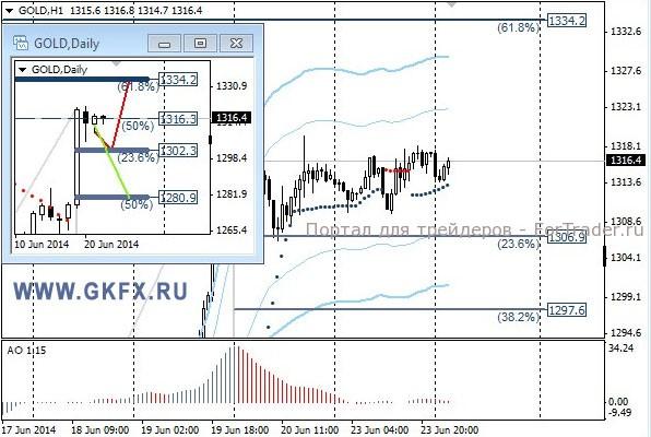 Цены на золото зажимаются, формируя треугольник с вероятным выходом вверх, тем самым предполагаемый откат к 1300,0 не будет исполнен. В сложившейся ситуации необходимо переходить к активным действиям. Традиционно делаю два варианта движения цены на неделю, основной красный и альтернативный зеленый. Значимые уровни на сегодня отмечены на часовом графике. Индикатор АО находится у нуля, указывая на неопределенность. Индикатор тренда указывает на рост. Преодоление уровня 1221,0 позволит купить с целями 1225,0, 1230,0 и 1240,0.