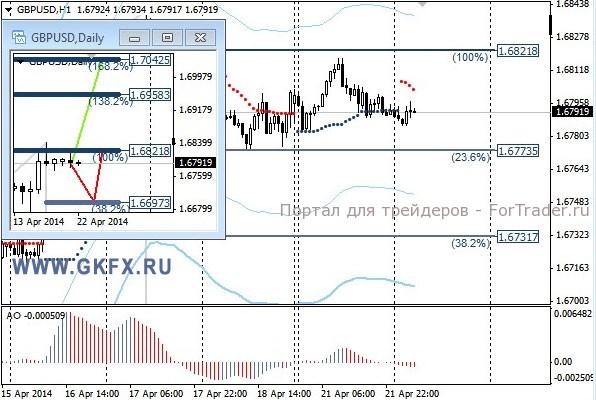 Пара GBPUSD закончила понедельник практически без изменений. Сформированная модель на текущий момент больше подходит для рассмотрения продаж. На дневном графике отработался зеленый сценарий. На эту неделю традиционно рассматриваю два варианта возможного движения цены, основной красный и альтернативный зеленый. Значимые уровни на сегодня отмечены на часовом графике. Индикатор АО находится в отрицательной зоне и снижается, указывая на желание пары двигаться вниз в данное время. Индикатор тренда указывает на снижение. Преодоление 1,6770 позволит продать с целями 1,6750, 1,6735 и 1,6700.