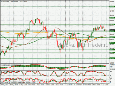 Пара EUR/USD снизилась со вчерашнего максимума в $1.4578 до уровней в области $1.4480.