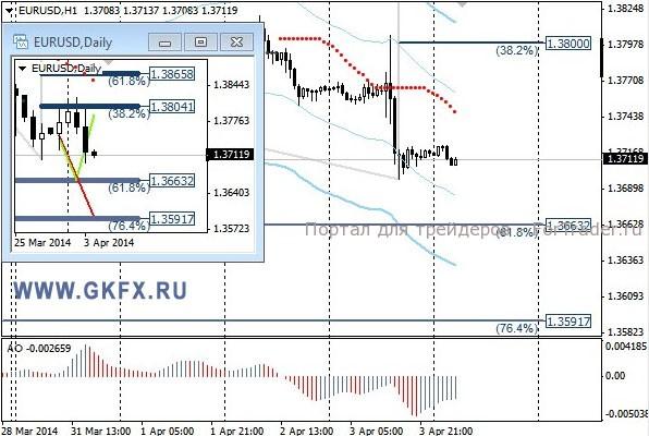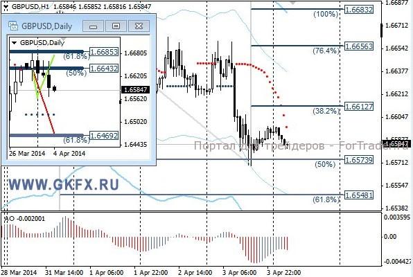 Пара EURUSD возобновила снижение к новым минимумам после результатов заседания ЕЦБ. Рывок вверх был, скорее всего, реакцией на решение оставить процентные ставки неизменными. Однако позднее стало известно, что ЕЦБ обсуждал количественное смягчение, и это стало поводом для снижения пары. Также выходила статистика по США, а именно была интересна компонента занятости в индексе менеджеров по снабжению для непроизводственной сферы США, которая значительно выросла. Это дает шанс для сегодняшних данных по рынку труда в США, оказаться на высоте. Сделка по рекомендации закрылась по безубытку. На эту неделю традиционно рассматриваю два варианта возможного движения цены, основной красный и альтернативный зеленый. Значимые уровни на сегодня отмечены на часовом графике. Индикатор АО находится в отрицательной зоне и растет, указывая на коррекцию перед возможным продолжением снижения. Индикатор тренда указывает на снижение. Под сегодняшние данные рекомендаций не даю, но поставил бы на снижение пары.