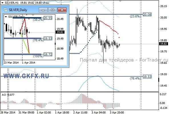 Цены на серебро снижались на фоне роста доллара, а также было кратковременное снижение после решения ЕЦБ. Сегодня ожидаются данные по новым рабочим местам вне с/х, и поэтому под эти данные рекомендаций не даю. Традиционно делаю два варианта движения цены на неделю, основной красный и альтернативный зеленый. Значимые уровни на сегодня отмечены на часовом графике. Индикатор АО находится в отрицательной зоне и растет, указывая на коррекцию перед возможным продолжением снижения. Индикатор тренда указывает на снижение. Вне рынка.