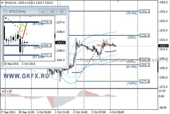 Цены на золото консолидировались ниже 1325,0, однако официальная статистика по рынку труда США перенесена, и сценарий снижения золота может быть нарушен из-за текущей слабости доллара. Правительство США уже третий день находится в вынужденном отпуске из-за проблем с принятием бюджета на новый финансовый год. Однако условие для продаж исполнилось и лучше защитить позицию, переведя стоп в безубыток или лучше прикрыть с небольшим плюсом. Традиционно делаю два варианта движения цены на неделю, основной красный и альтернативный зеленый. Значимые уровни на сегодня отмечены на часовом графике. Индикатор АО находится в положительной зоне и снижается, указывая на коррекцию перед возможным продолжением роста. Индикатор тренда указывает на рост. Держать продажи от 1320/25,0 с целями 1297,0, 1282,0 и 1260,0.