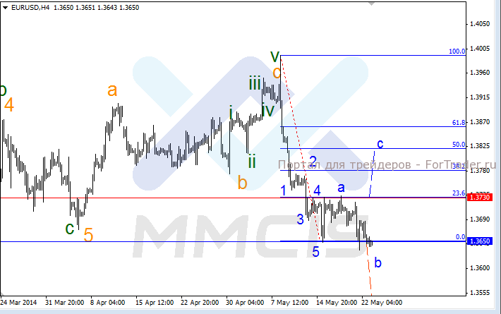 В качестве основного сценария аналитики рассматривают рост котировки в случае пробоя отметки 1.3730. Затем восходящее ралли будет проходить в рамках волны «с» к уровню 1.3800. В качестве альтернативного сценария рассматривается пробой локального уровня поддержки 1.3650, после чего падение продолжится.