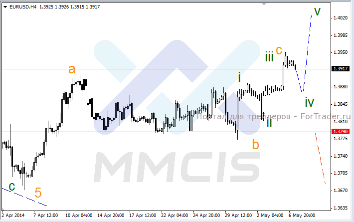Последние три недели пара евро/доллар провела в достаточно узком боковом коридоре. Вместе с тем вчерашний рост привел к достижению цели 1.3950 в рамках волны «с». По мнению аналитиков, пробой и четкая фиксация цены выше уровня 1.3900 указывает на продолжение среднесрочного роста.