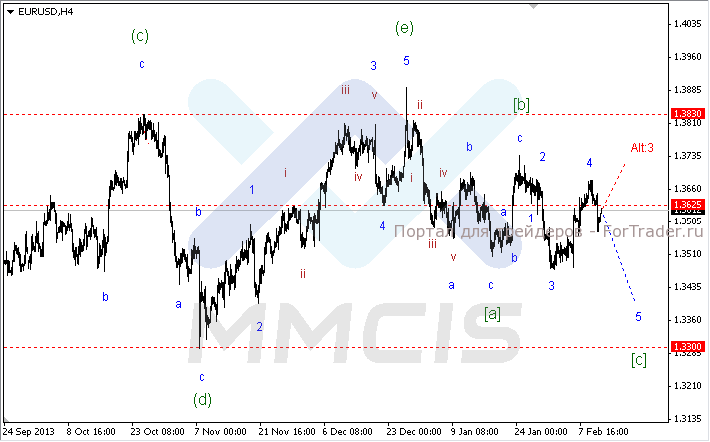 Поэтому в качестве основного сценария аналитики рассматривают вероятность дальнейшего снижения котировок в рамках удлиненной волны «5» в направлении психологического уровня 1.3400. Альтернативный сценарий по-прежнему предполагает продолжение роста. В таком случае будет пересмотрена волновая разметка, а рост пары будет рассматриваться в рамках волны «Alt:3».
