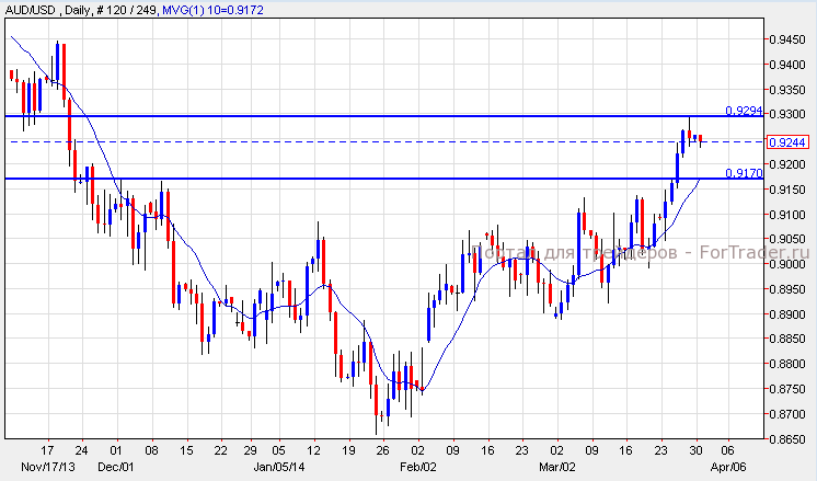 Австралийский доллар упал против доллара США. Согласно техническому анализу 4-часового графика, пара австралийский доллар/доллар США торгуется на уровне сопротивления 0.9294 и направляется к уровню поддержки 0.9170. Пока пара удерживается на уровне поддержки, она может вновь вырасти к отметке 0.9400, но только если пробъет уровень сопротивления.