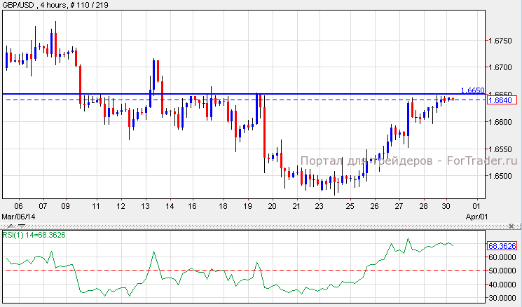 Британский фунт не изменился против доллара США после выхода Платежного баланса, который не оправдал прогнозов и составил 22.4 миллиарда против 13.5 миллиарда, а уровень окончательного ВВП не изменился и составил 0.7%. Согласно техническому анализу 4-часового графика, пара фунт/доллар торгуется на сильном уровне сопротивления 1.6650. Пара может упасть к отметке 1.6600, этот импульс поддерживается Индикатором относительной силы который указывает на дальнейший откат пары. Если пара фунт/доллар пробъет уровень сопротивления 1.6700, она может вновь достичь отметки 1.6700.