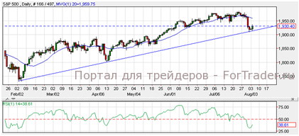 Американские индексы завершили торги в плюсе, поскольку инвесторы настроены позитивно в связи с решением Португалии спасти свой крупнейший банк EspiritoSanto. NASDAQ вырос на 0.72%, S&P 500 вырос на 0.72%, а DowJones добавил к стоимости 0.46%. Согласно техническому анализу дневного графика, S&P 500 торгуется в восходящем тренде. Пока индекс удерживается на этом уровне, возможен его рост к отметке 2,000. Однако, при прорыве ниже линии поддержки возможно падение к отметке 1,900.