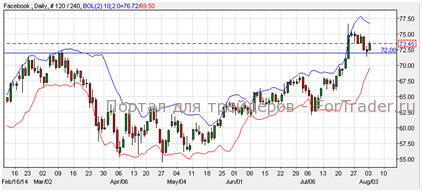 Акции Facebook выросли на 1.59% и завершили торги на цене $73.51. Согласно техническому анализу дневного графика, акции торгуются выше нового уровня поддержки $72.00. Акции вырастут к отметке $76.00 если удержатся на текущем уровне, однако прорыв ниже уровня поддержки может вызвать падение цены к отметке $67.00.