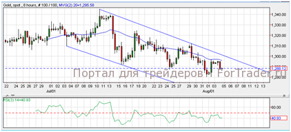 Золото подешевело до $1289 за унцию. Согласно техническому анализу 8-часового графика, золото торгуется в нисходящем канале, а индикатор относительной силы находиться ниже уровня 50. Пока золото удерживает это положение можно ожидать его падение к отметке $1,270. Однако, при прорыве верхней линии канала возможна коррекция к отметке $1,300.