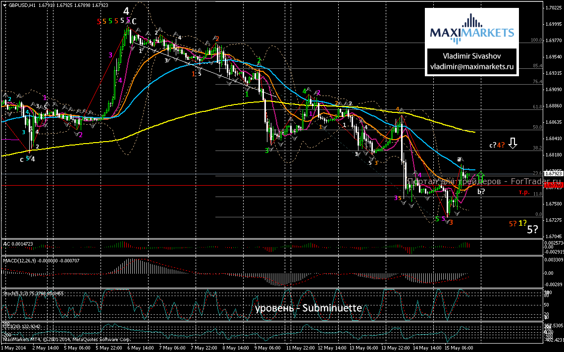 В нашем прогнозе на сегодня предполагаем продолжение текущей коррекции пары и подъём британской валюты к ценовым уровням: 1.6824; 1.6844 и, возможно, к 1.6880. Далее, ожидаем — возобновление нисходящего движения британской валюты в направлении предыдущего локального минимума — 1.6731 и ниже.