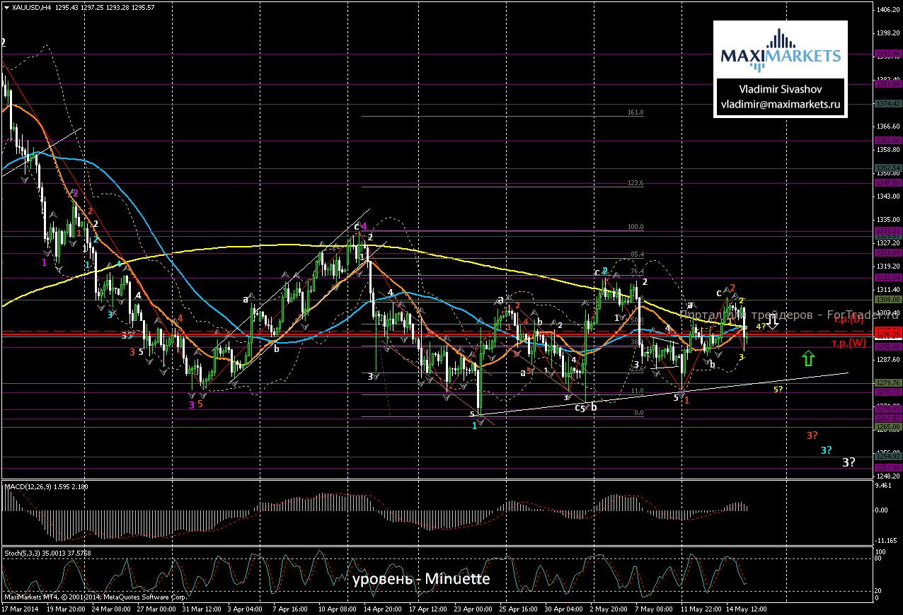 Котировки золота продолжают двигаться в сужающемся майском диапазоне. Внимание рынка, по-прежнему, сосредоточено на макроэкономической статистике, выходящей в Европе и США, а также на ситуации в Юго-Восточной Украине. При этом, значительные ценовые движения маловероятны, в связи с тем, что инвестиционный и физический спрос на золото остаются довольно слабыми. На вчерашних торгах, металл, вновь, продемонстрировал снижение, развернувшись от недельного максимума 1308.97$ в прежний диапазон движения. На торгах в Лондоне котировки упали до уровня 1290.87$, а затем, начали корректироваться, завершив дневную торговлю на ценовом уровне 1298.76$ за тройскую унцию (-8.22$). Спрос на серебро со стороны промышленного сектора, являющегося наиболее важным компонентом общего спроса на металл, вновь упал. На этом фоне, фьючерсы на серебро, существенно подешевели, и на вчерашних торгах, достигли минимального 2-х дневного уровня — 19.40$ за унцию (- 27 центов).