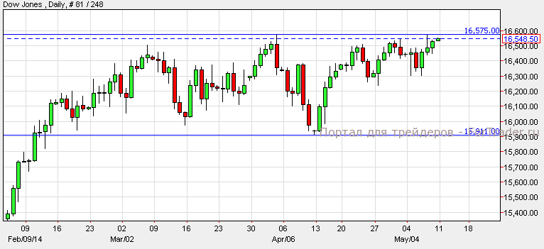 Уолл-стрит завершила торговую неделю повышением, поскольку несколько крупных компаний опубликовали сильные отчёты о доходах. NASDAQ вырос на 0.18%, Dow Jones вырос на 0.20%, а S&P добавил к стоимости 0.19%. Согласно техническому анализу дневного графика, Dow Jones торгуется ниже уровня сопротивления 16,575. Индекс может вырасти к отметке 16,700 если пробьет уровень сопротивления, однако задержка на уровне сопротивления может остановить восходящий импульс и вызвать откат индекса к уровню сопротивления 15,900.