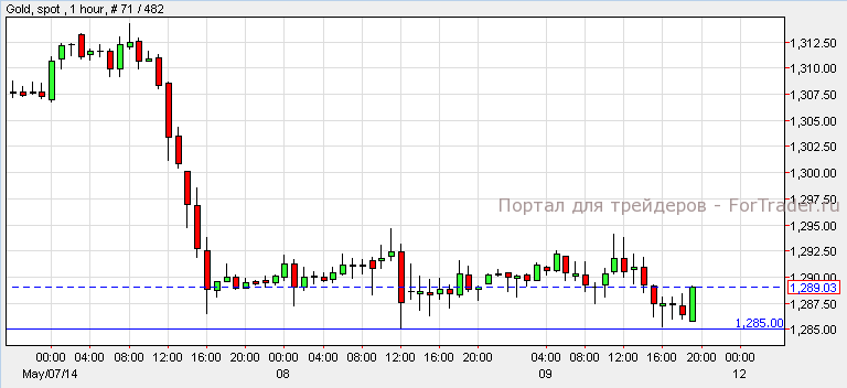 Золото подешевело на 2$ по итогам пятничной сессии и закрылось на цене 1,288$ за унцию, американские индексы завершили торговый день повышением. Согласно техническому анализу 1-часового графика, золото торгуется над уровнем поддержки $1,285. Пока золото удерживается на этом уровне поддержки, цена может вырасти к отметке 1300$. Однако, прорыв ниже уровня поддержки приведет золото к отметке 1275$.