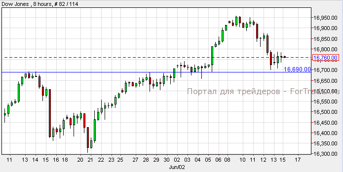 Уолл-стрит завершила пятничный торговый день в плюсе. NASDAQ вырос на 0.30%, Dow Jones вырос на 0.25%, а S&P прибавил 0.31%. Согласно техническому анализу 8-часового графика, Dow Jones не смог опуститься ниже уровня поддержки 16,690. Пока индекс удерживается на этом уровне, возможен его рост к отметке 17,000. Однако, прорыв ниже уровня поддержки вызовет разворот тренда и падение к пунктам 16,500.